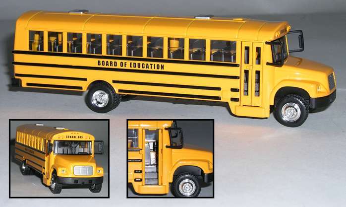 1:53 SCALE Die-cast School Bus. Dimensions: 8" x 2" wide. working doors and stop sign.