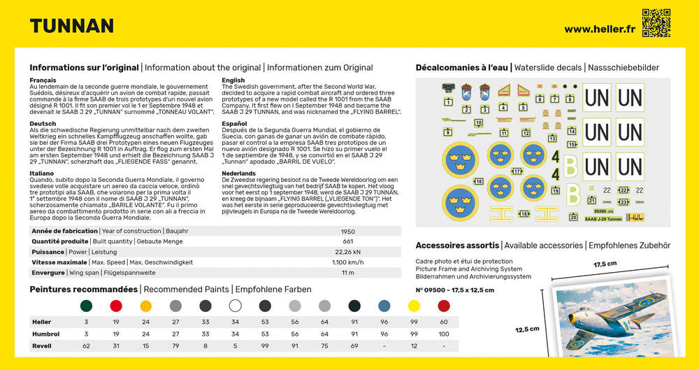 The Swedish government, after the Second World War, decided to acquire a rapid combat aircraft and ordered three prototypes of a new model called the R 1001 from the SAAB Company. It first flew on I September 1948 and became the SAAB J 29 TUNNAN, and was nicknamed the „FLYING BARREL“.