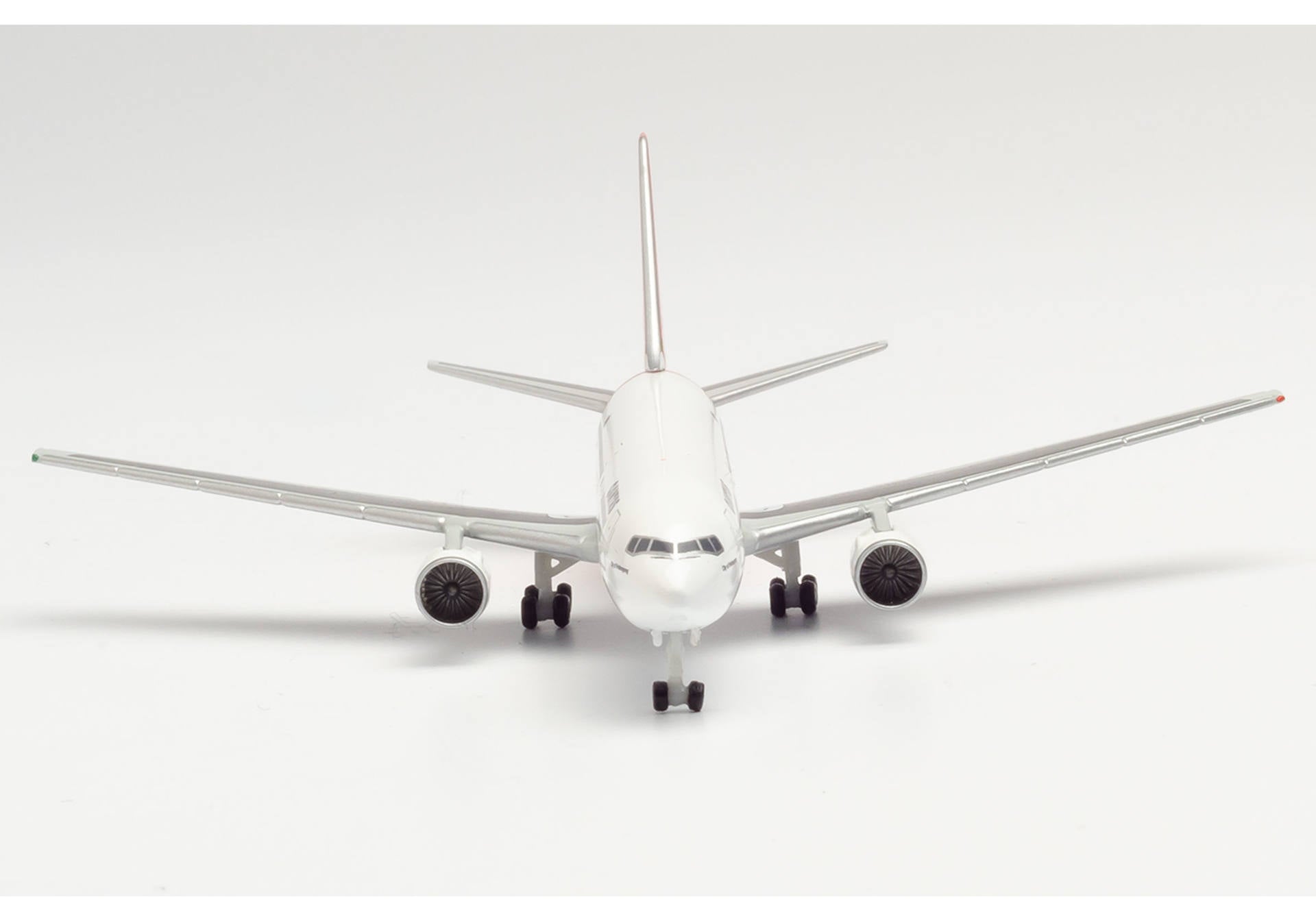 This die-cast metal airplane model comes in 1/500 scale with landing gear and no stand. The model is approximately 3 ¾ inches long with 3 5/8 inch wingspan.