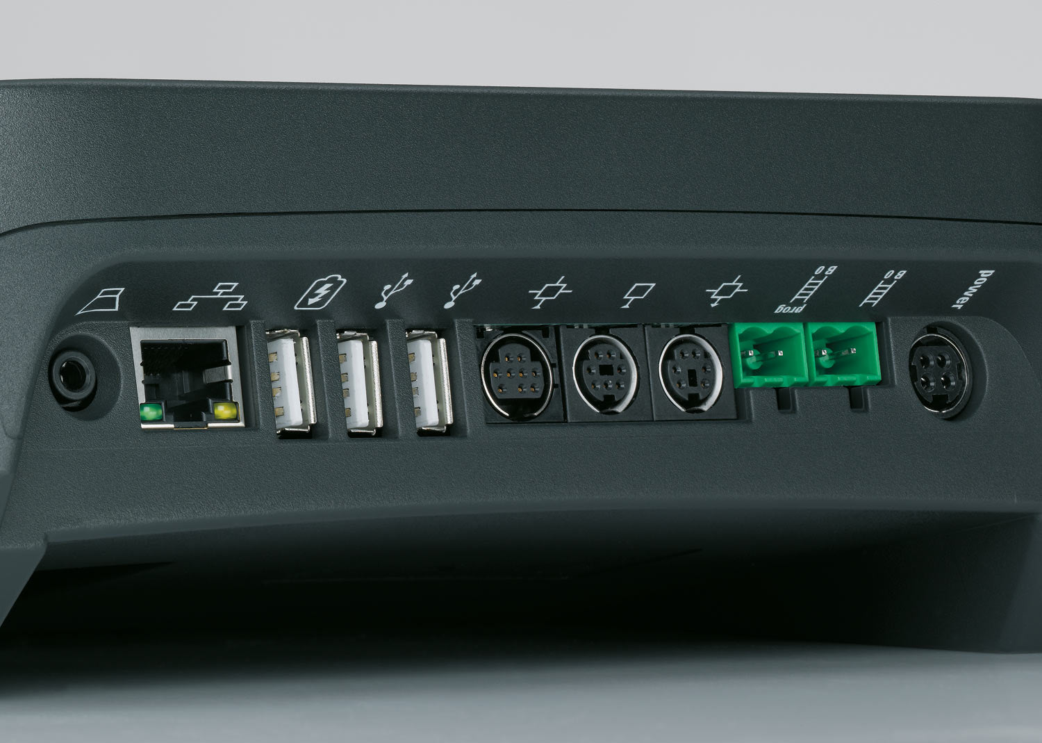 - 2 USB hosts such as for mouse, keyboard, USB stick, etc., and 1 USB loading socket.