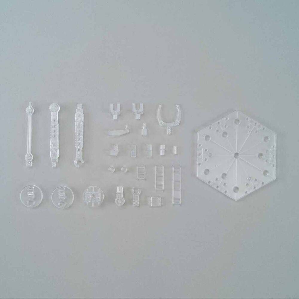 The octagon base and the square part that can be connected to any one of its sides come with cool mechanical detailing and panel lines, plus a total of 10 holes for placing the support pole for the main stand to adjust the main stand's height. The support pole has an ingenious locking mechanism that allows it to extend or retract and is strong enough to hold the main stand in place. The main stand itself can also be extended upwards to pose your kit in a much higher position.