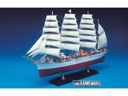 Aoshima's full-hull kit of the Kaiwo Maru features vacuformed sails, a display stand, twine for rigging, and cloth flags. Also includes a nice selection of white metal detail parts. At 1/150 scale this beauty will measure 64.7cm long, 15.3cm wide, and 37.5cm tall when completed. The Japan 4-Mast Bark Kaiwo Maru was produced by Aoshima in a 1/350 scale assembly kit.