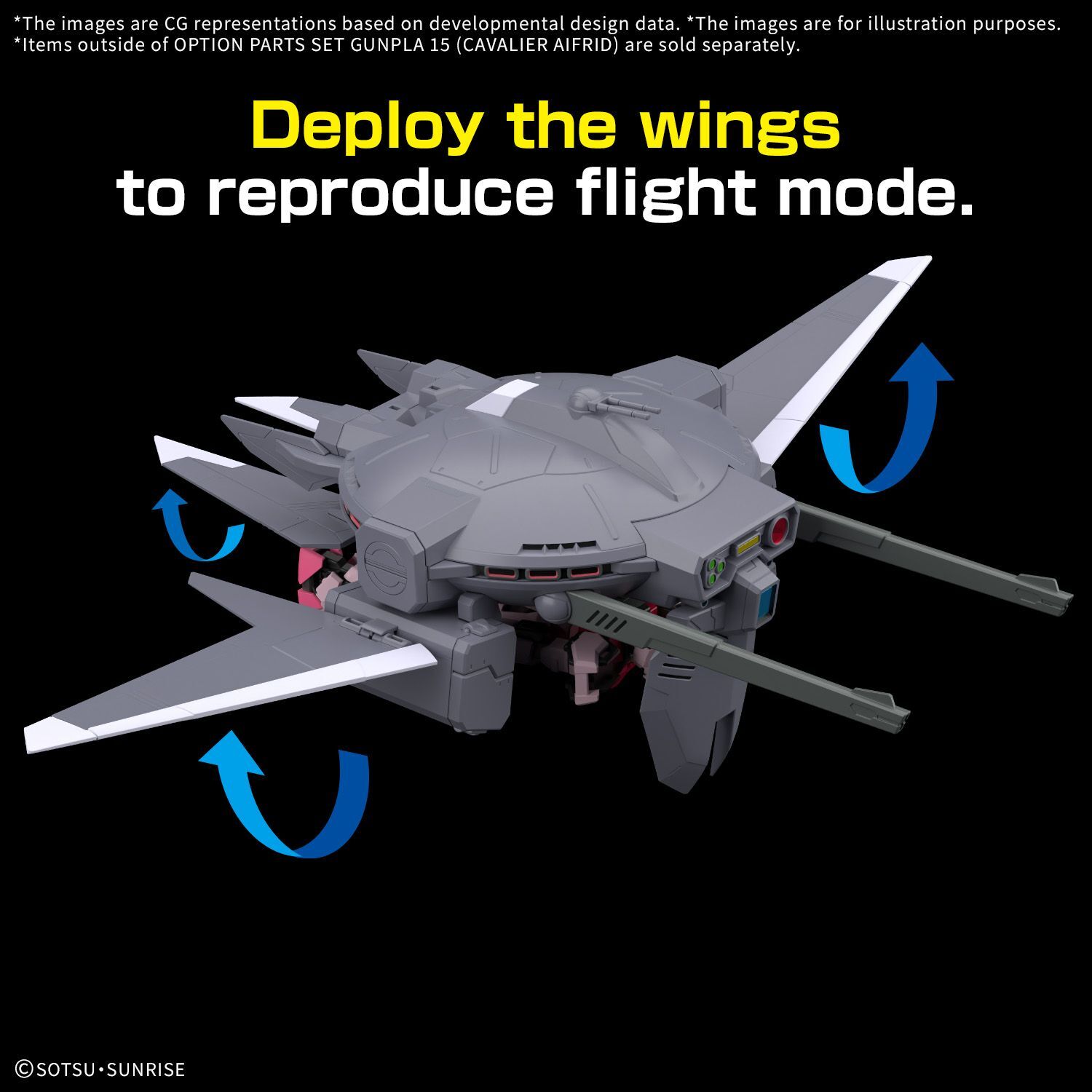 The Cavalier Aifrid from "Mobile Suit Gundam Seed Freedom" is now available as part of Bandai's "Option Parts Set" series! Various joint parts are included so it can be attached to various Gunpla; the prototype Type 35 modified railgun is included. The hatch on the missile pod opens and closes, and the wings can be deployed to recreate its flight mode. An extension joint is included that allows you to equip various backpacks to the HG 1/144-scale Z'Gok (Seed Freedom ver.) and other models, too! An Action Base 7 is included as well, so you can display the Cavalier Aifrid by itself.