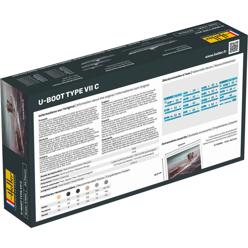 The German Type VII C submarine was by far the most produced submarine. This variant was commissioned in April 1940 and formed the backbone of the German fleet during the Battle of the Atlantic. Only one boat survives, now a museum ship in Laboe, Germany. Type VII submarines were single-hulled ocean-going vessels, distinguished by their external saddle tanks. More than 700 units were commissioned.