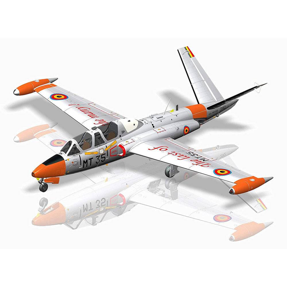 - A Belgian Air Force Fouga in natural metal finish, code Mt35. This aircraft received special markings in observation of the final flight of the Magister by the Belgian Air Force. Of note is the nose art on the aircraft, which reads "The Last Whistling Turtle": a reference to the nickname applied to the aircraft by Belgian pilots