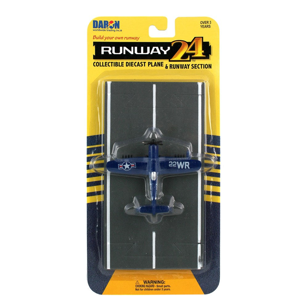 This fabulous line of diecast aircraft is great for the young collector. Runway 24 features a large variety of vintage and modern aircraft, ranging from bi-planes to the most recent jet and helicopters, in military, commercial and private body styles and in a variety of color schemes. Each model also includes a section of runway material. Straight and intersection runway sections also sold separately. Runway is 6" Long. Model size varies from 3" to 5" depending on model type.