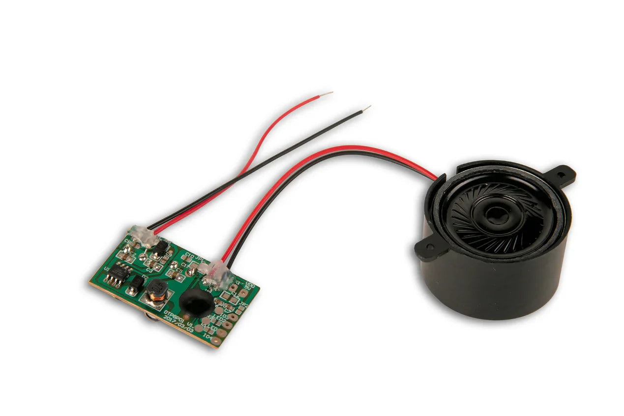 Breathe some life into your model landscape! Thanks to the compact design of the NOCH Sound Scenes’ electronics and loudspeakers, sound emerges where it comes from in the original. The ready-to-connect electronics can be placed in a forest or in a chicken run. You will be surprised how much more realistic a sound sounds when it occurs in the middle of the action. Can be connected to a standard 16 V model railway transformer. The sound has a duration of approx. 20 seconds. Suitable for AC and DC.