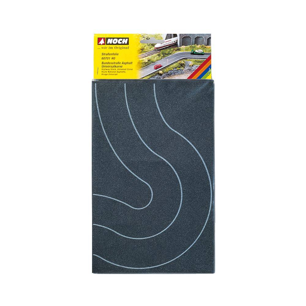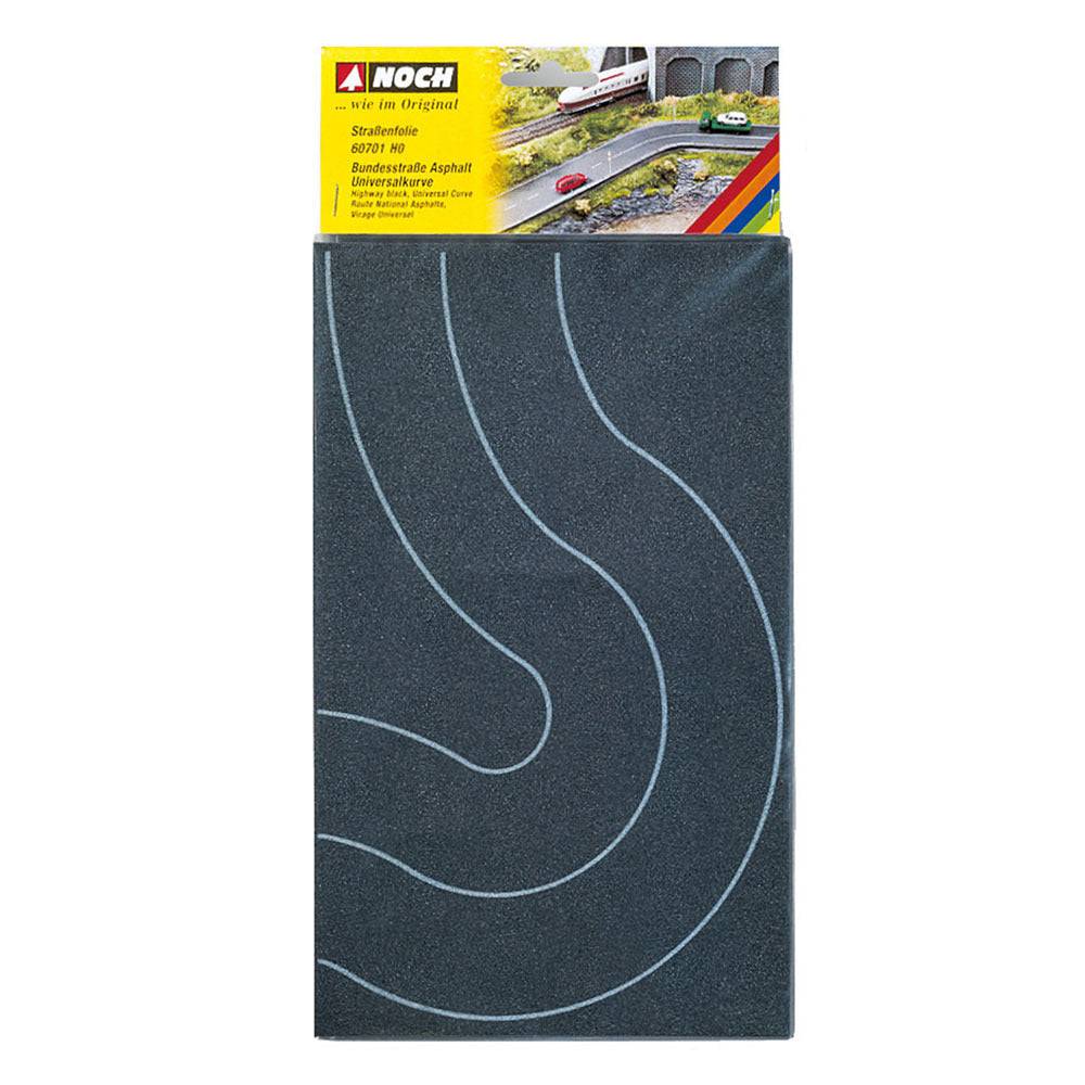 A realistic road design is very easy due to the NOCH Road Foils: The very stable, auto-adhesive, and flexible Road Foil is very easy to adhere. The Road Foils are available in very different variations and widths, such as the Federal Road or the Country Road, as a Curve, a Crossing and a Car-Park, as well as a Cobblestone Place. All NOCH Road Foils are also available in the colour "Asphalt" and "Grey" for the model railway scales H0, TT and N.
