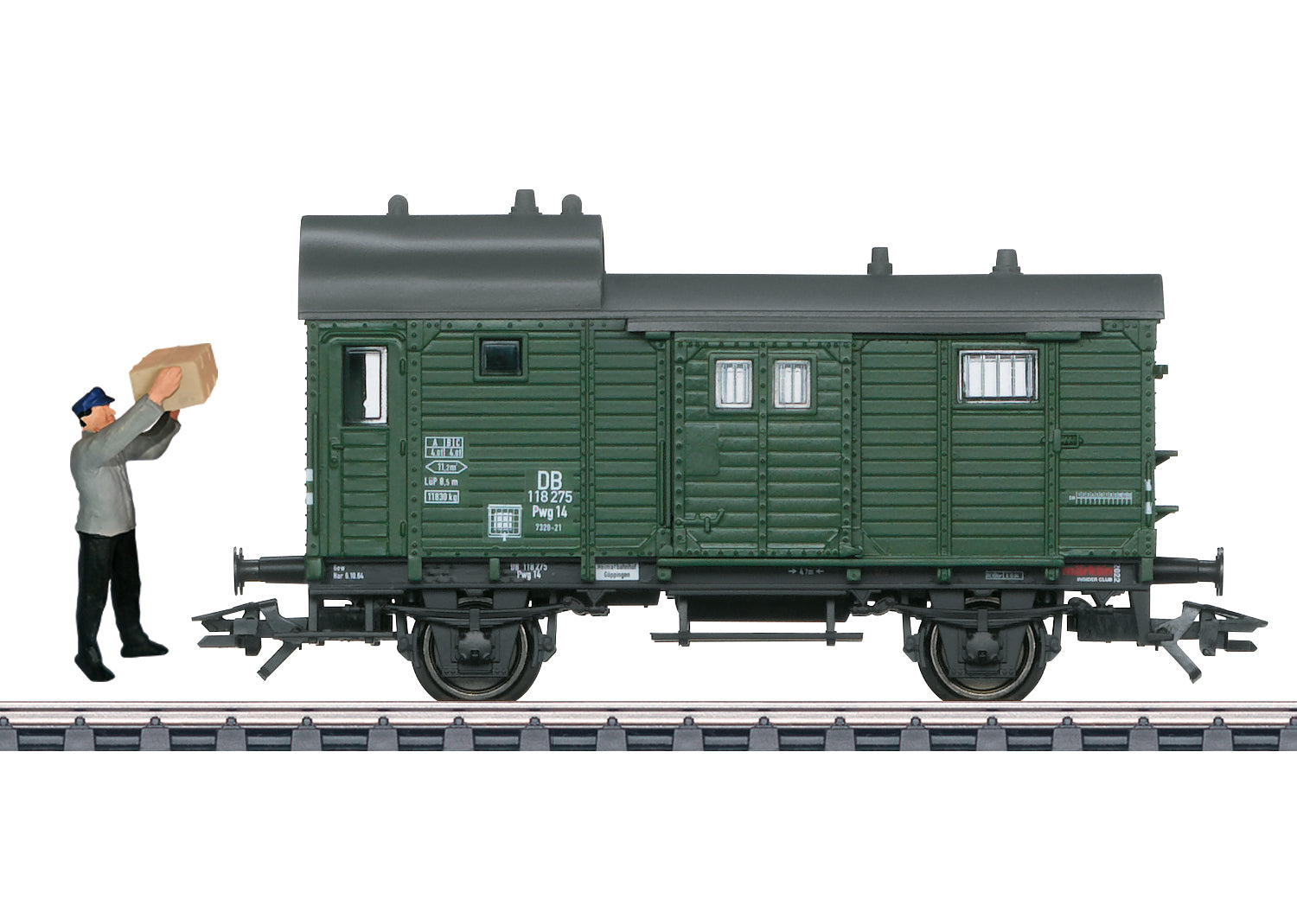 Prototype: German Federal Railroad (DB) type Pwg 14 (Pwg Pr 14) freight train baggage car. Chrome oxide green basic paint scheme. The car looks as it did around 1967/68.
