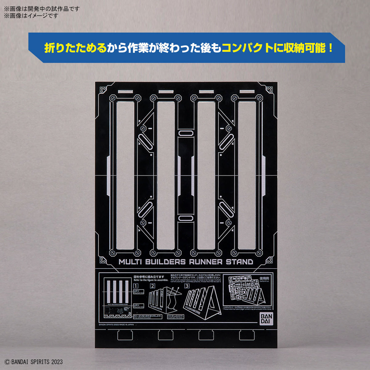 This Multi Builders Runner Stand is a paper craft item that will give you valuable assistance when you're building a plastic model! Two sets of stands are included; they'll prop runners up in a vertical position, saving space and making them easy to distinguish to improve the efficiency of assembly. They're foldable, too, so you can store them in very little space when they're not in use.