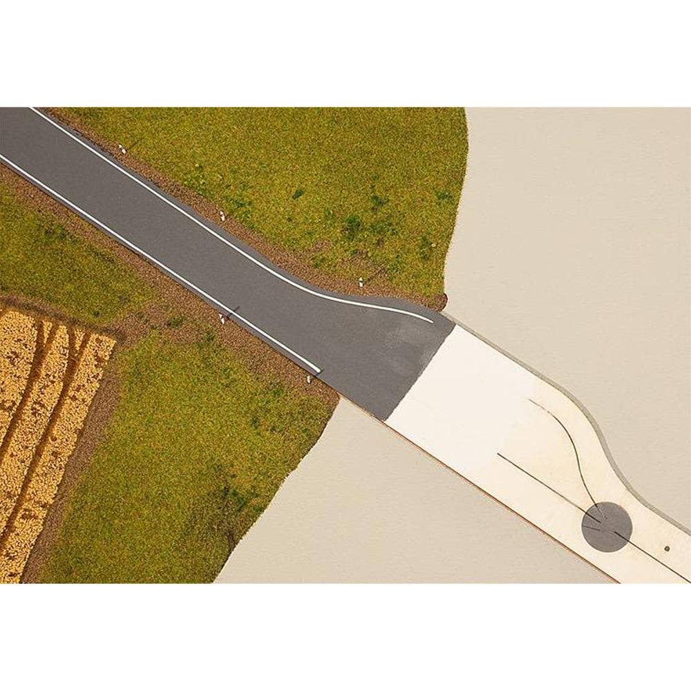 With these by assembling easy to process road parts, which already contain the groove for the contact wire, can build different 1- and 2-lane road courses.