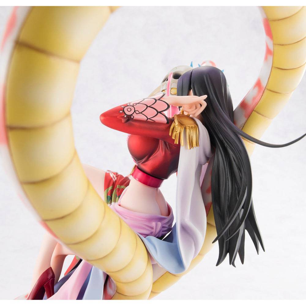 As the Empress of Maiden Island's Amazon Lily empire, Boa was often known as the "Snake Princess" by the Kuja Pirates - a name captured beautifully by this figure. Her beautiful curves have been captured in intricate detail by sculptor Piron and carefully painted by the team of t2y and Kenji Ando to truly bring out the charm of the Empress.