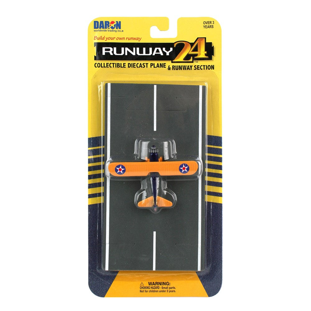 This fabulous line of diecast aircraft is great for the young collector. Runway 24 features a large variety of vintage and modern aircraft, ranging from bi-planes to the most recent jet and helicopters, in military, commercial and private body styles and in a variety of color schemes. Each model also includes a section of runway material. Straight and intersection runway sections also sold separately. Runway is 6" Long. Model size varies from 3" to 5" depending on model type.