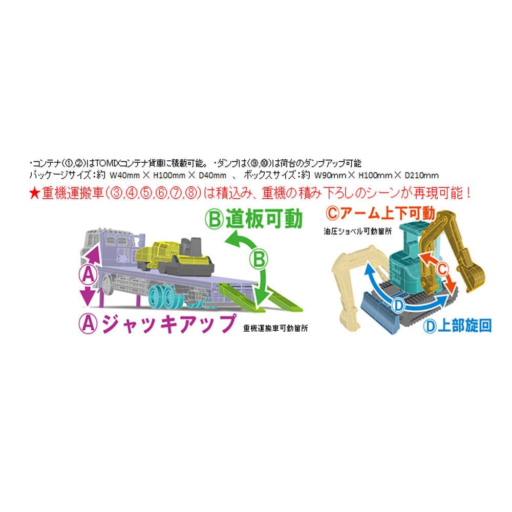 Heavy equipment transport vehicles (4 low-floor axes) and container vehicles (2 front axes, 1 rear axis) are now available for the first time in the series with new molds! For the cab, a new grill has been added to the new Hino Profia and Hino Super Dolphin Profia Terravi (for the front two axles). A full lineup of new U31A type containers, new bottom dump trucks, and heavy equipment carriers with heavy equipment. The outriggers and road boards of heavy equipment carriers are movable, allowing loading and unloading operations to be reproduced.